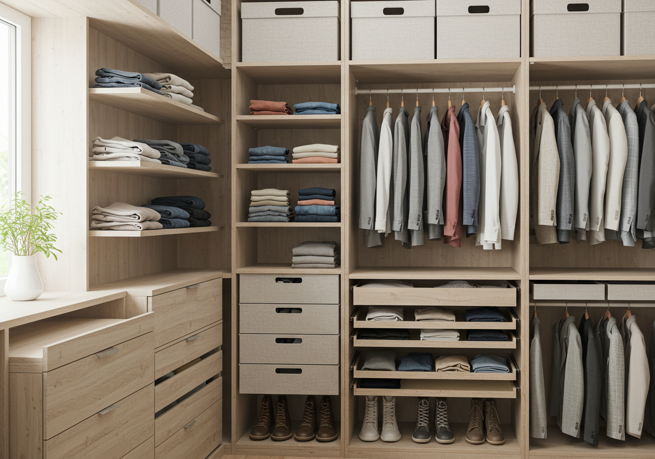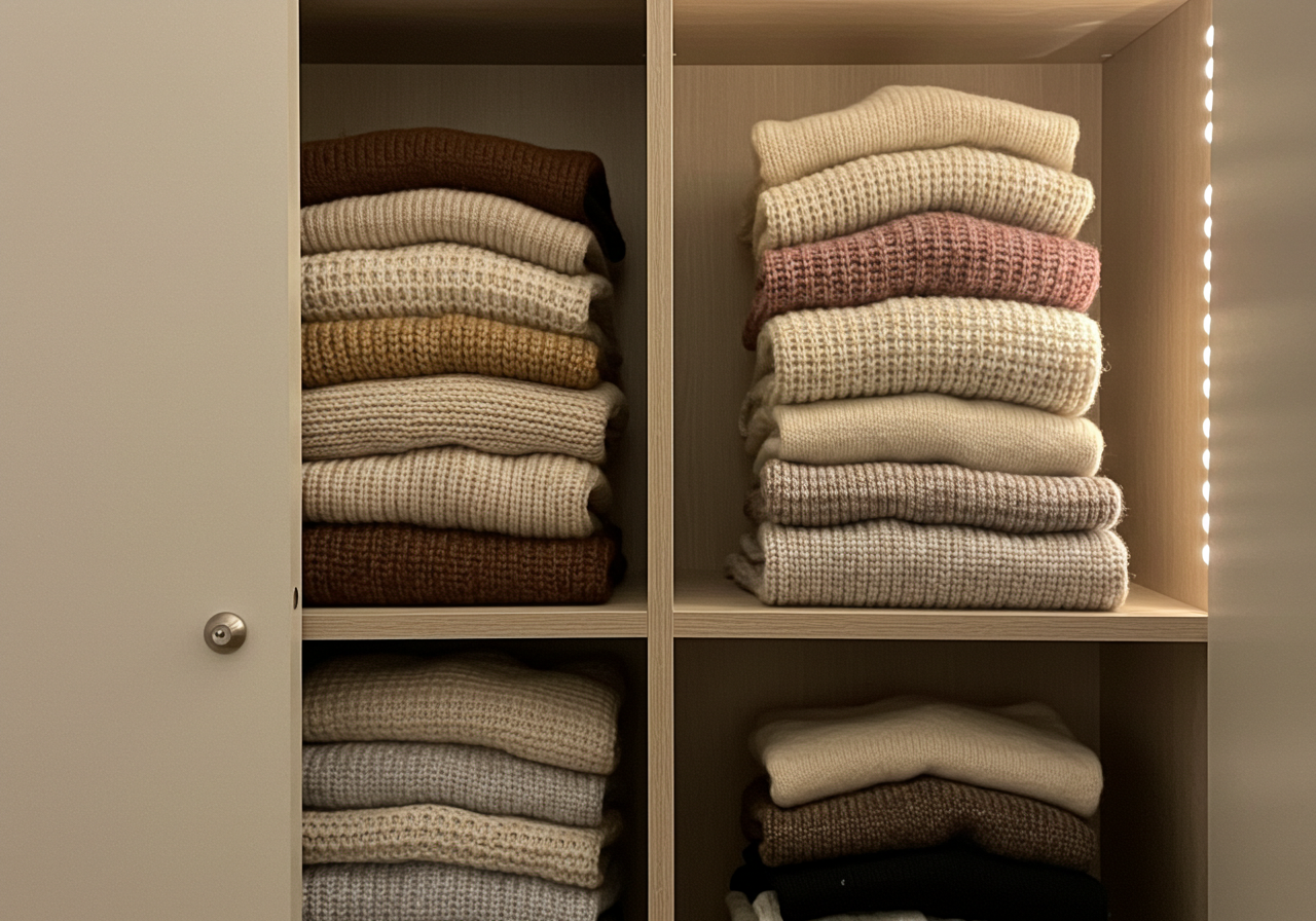 - 선반 활용: 니트, 머플러, 장갑 같은 소품은 옷걸이보다 선반이나 서랍에 넣어 보관하는 것이 좋습니다.