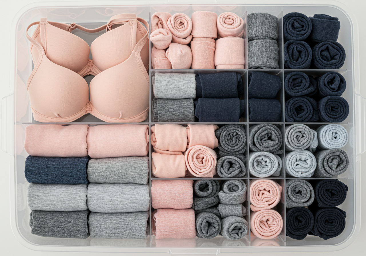 칸막이형 수납 박스는 작은 옷가지나 소품을 구분해서 보관하는 데 매우 유용합니다. 특히 양말, 속옷, 티셔츠, 가벼운 스카프 등은 수납 박스를 이용하면 한눈에 보기 좋고 찾기도 쉬워집니다.