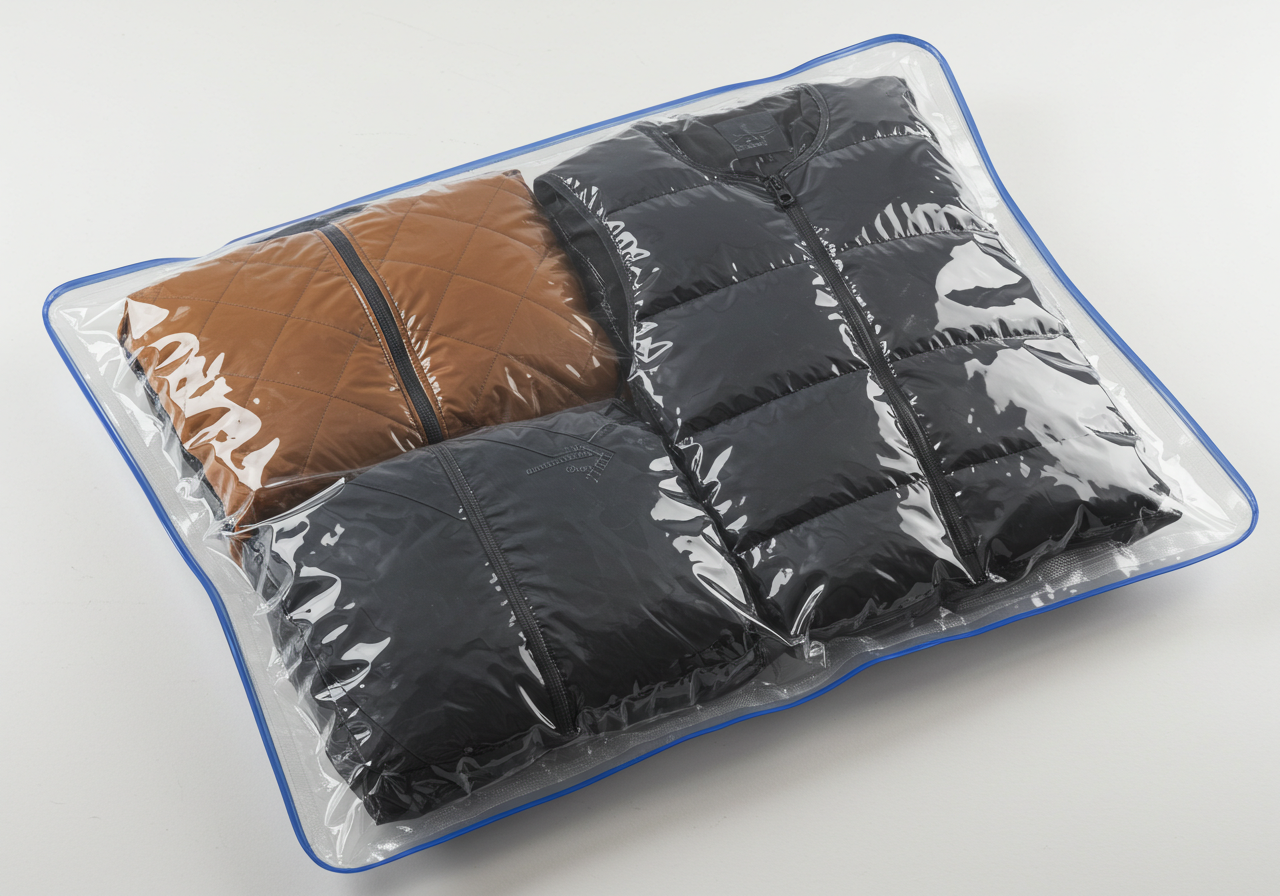 계절 옷은 부피가 크고, 한동안 사용하지 않기 때문에 진공 압축팩이나 지퍼백형 압축 봉투를 이용해 보관하면 공간을 크게 절약할 수 있습니다.